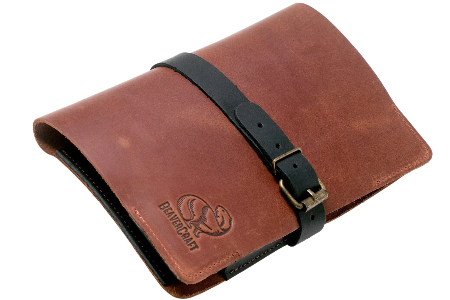 Este BeaverCraft Extended Spoon Carving Set S13x es un gran set para cualquier tallador de madera. Contiene todo lo necesario para empezar a tallar cucharas. Un cuchillo versátil para tallar madera, un cuchillo para tallar madera para tareas de detalle, un cuchillo v (tanto para diestros como para zurdos) y un asentador. Todo bien guardado en un impresionante rollo de herramientas de piel.