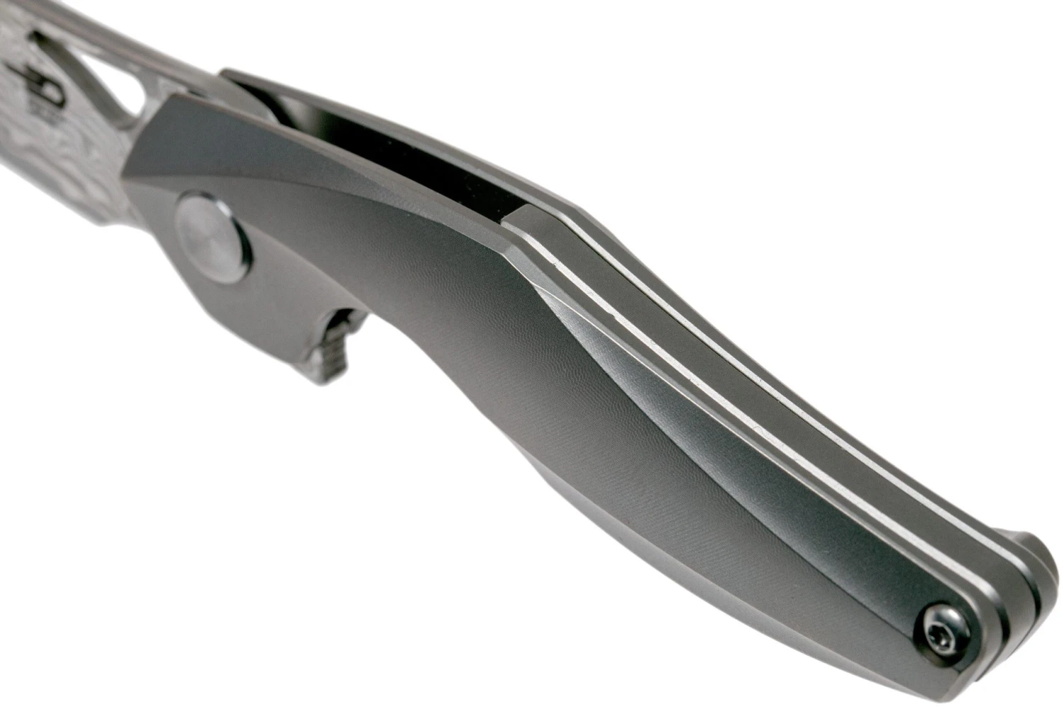 Bestech Thyra BT2106A Grey Blasted Titanium, Carbon Fibre Bolster, Satin Navaja, Diseño Kombou