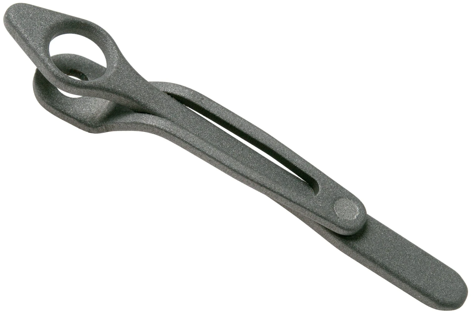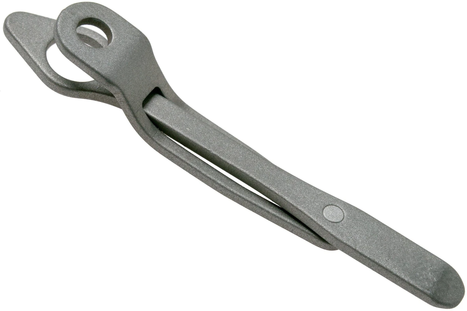 Este Chris Reeve Knives Hawk Pocket clip es un genial clip de bolsillo para tu navaja Chris Reeve. Fue diseñado por Grant & Gavin Hawk y se utilizó en el ya caducado Ti-Lock. Este clip, sin embargo, fue tan popular que la gente empezó a utilizarlo también en otros cuchillos, y la demanda de los clips casi llegó a ser mayor que la de los propios cuchillos. Por ello, Chris Reeve Knives decidió seguir produciendo estos clips de bolsillo especiales para sus otros cuchillos.