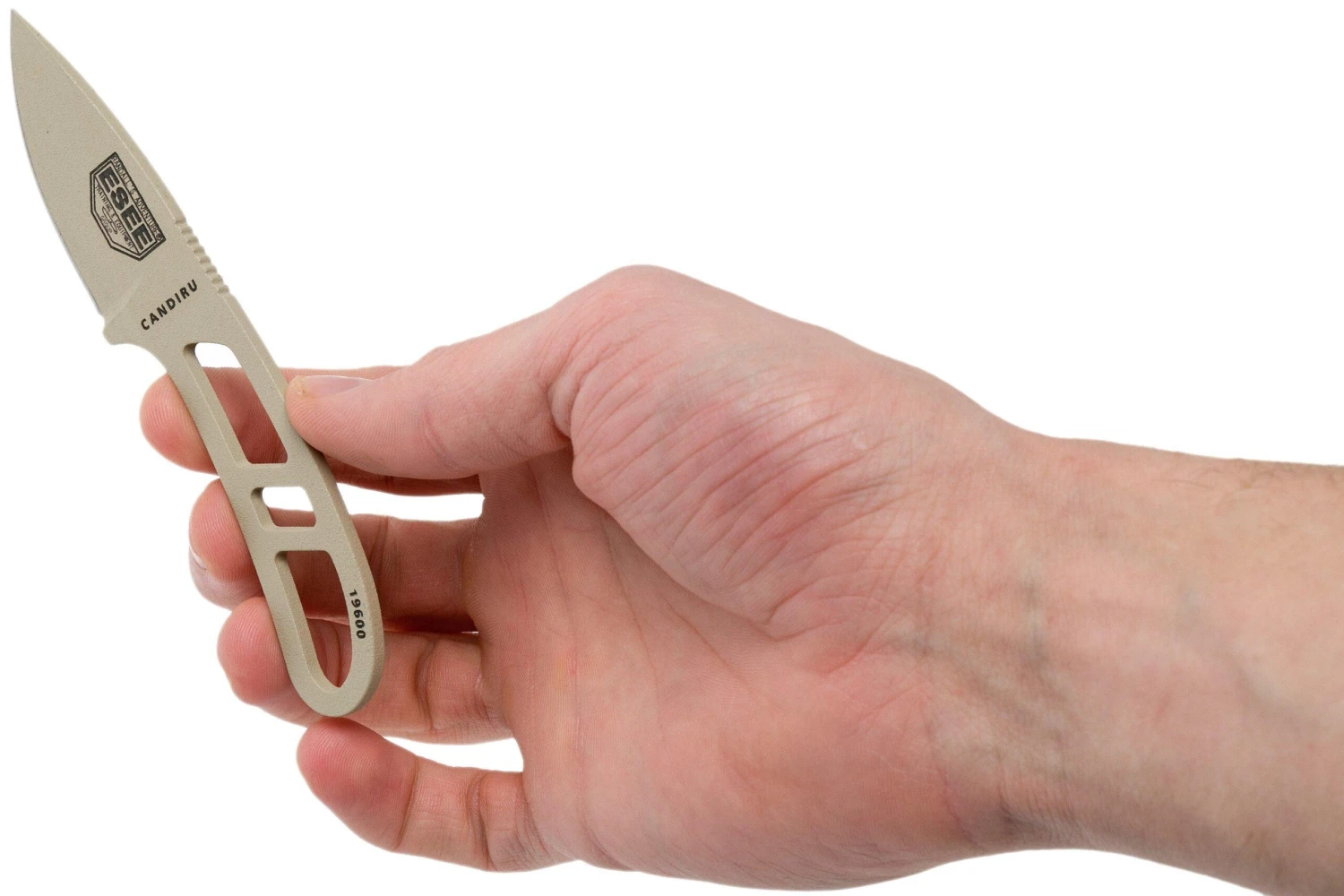 ESEE Candiru Desert Tan CAN-DT Cuchillo De Cuello Con Funda Negra + Clip De Cinturón