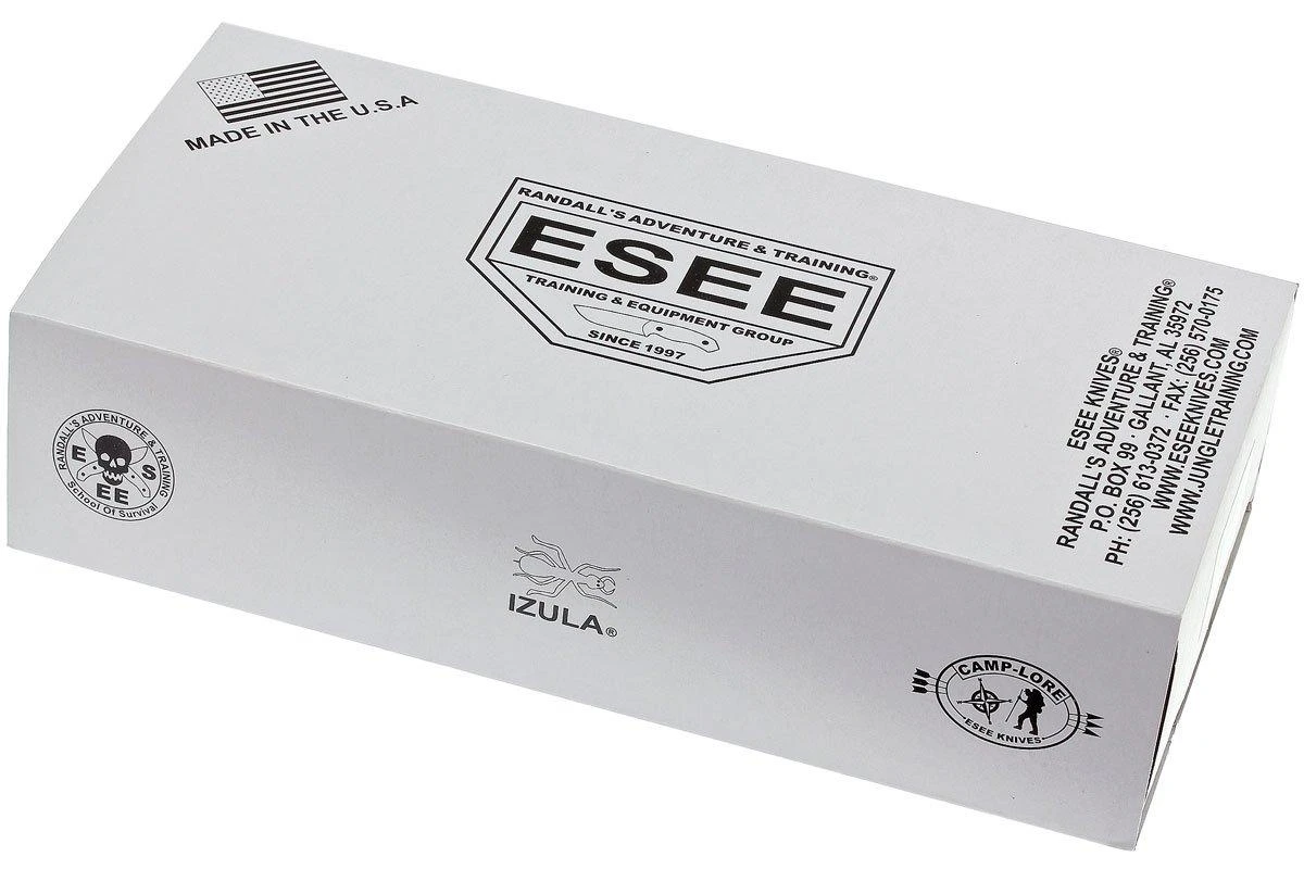 El Esee Izula recibe su nombre por una agresiva hormiga de la selva peruana. Simboliza que el cuchillo no debería ser subestimado por su tamaño. El Izula es un cuchillo fijo muy versátil. Se puede guardar fácilmente en una bolsa o se puede llevar como un cuchillo de cuello. A pesar de su tamaño, proporciona un agarre realmente bueno. El cuchillo tiene un agujero en la parte posterior que ofrece un agarre extra cuando se pasa el dedo meñique por él. Por supuesto, también puedes crear tú mismo un asa de paracord para conseguir un mejor agarre. ESEE también dispone de accesorios de agarre auténticos si lo prefieres. Entonces el cuchillo, obviamente, se vuelve un poco más grande.