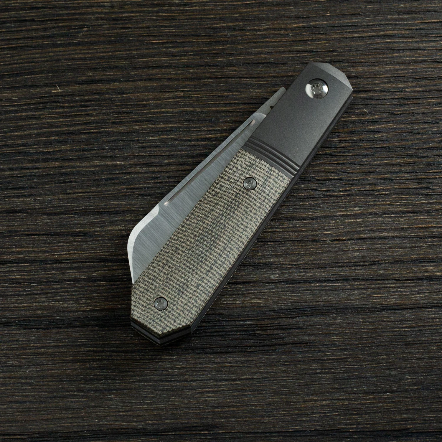 La Jack Wolf Knives Midnight Jack es una interpretación moderna de una navaja tradicional. El diseño de esta navaja es un tipo de Barlow estilizado. La base del mango, sin embargo, es angular. Los largos cabezales de titanio son una parte integral de los forros. Una elección fuerte y de primera calidad.