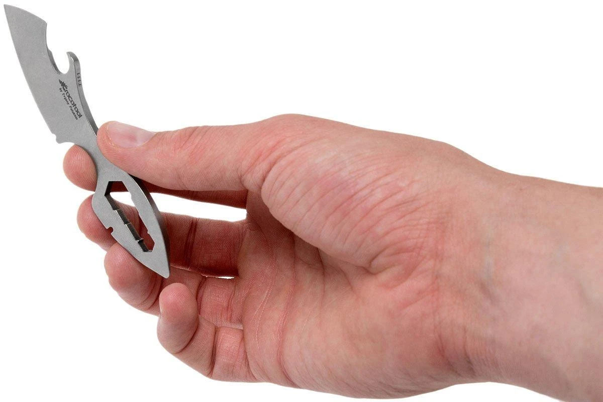 El Kizer Crocotool T111 es un práctico y compacto cuchillo de cuello fijo, con un par de prácticas herramientas. Además de una modesta hoja de acero CPM S35VN, el lomo se ha mejorado con un abridor de botellas. Gracias a su ingenioso diseño, también se puede utilizar como abrelatas. El mango está reforzado con una llave inglesa. El recorte más pequeño de la llave puede utilizarse como portabrocas para brocas estándar de 6 mm. La base del mango está reforzada con una pequeña ranura para poder pelar los cables y el extremo del mango puede utilizarse como destornillador plano o palanca.