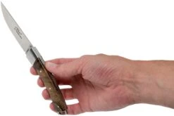 Esta navaja Le Thiers Le Nature es un homenaje al pueblo de Thiers en Francia. Durante siglos, Thiers ha sido el centro de la cuchillería francesa. Aquí los cuchillos de Le Thiers se hacen a mano. El hecho de que las navajas Le Thiers están hechas a mano queda claro cuando se observa el acabado. Cada cuchillo es único y tiene su propio encanto. El impresionante acabado con materiales naturales se encarga de un diseño característico. Esta navaja debería formar parte del equipamiento de todo caballero.