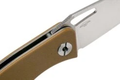 La Real Steel Terra Black es una práctica navaja EDC, diseñada por Poltergeist Works. Este fabricante de cuchillos polaco es conocido por sus diseños robustos y elegantes. La Terra no es una excepción. La hoja ha sido mejorada con un afilado plano completo. Esto significa que la hoja tiene un afilado fino desde el lomo hasta el filo. La única interrupción que se ve es la del filo de la navaja.