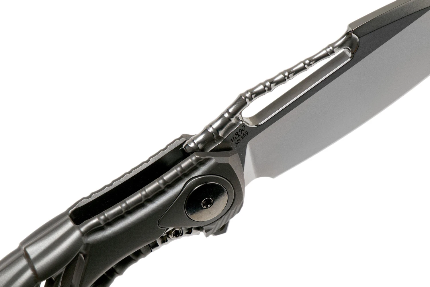 La Rike Thor 6 es una notable navaja con un diseño muy franco. El mango de la Rike Thor 6 está fresado a partir de un bloque sólido de titanio. Esto también se llama un marco integral. Esto hace que la producción de esta navaja sea increíblemente complicada. Hay que fresar el mango desde diferentes ángulos. Todo ello con las tolerancias más estrictas. No hay lugar para el error, porque la navaja debe moverse con suavidad. Afortunadamente, Rike es un experto en esto.