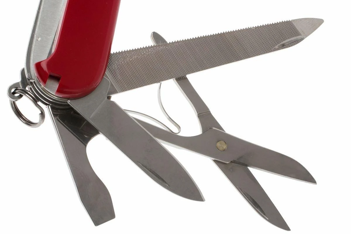 | Herramientas | lezna, abridor de botellas, sacacorchos, lima, gancho multiusos, llavero, cuchillo, sierra, tijeras, destornillador, destornillador pequeño, abrelatas, palillo de dientes, pinzas, pelacables |